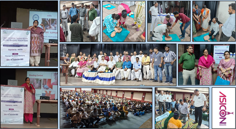 On 1st September 2025, the ASICON 2025 organizing committee in collaboration with District Health and Family Welfare Samiti of North 24 Parganas, conducted a program to train about 400 people in BLS, first aid and preliminary methods to handle accident victims.